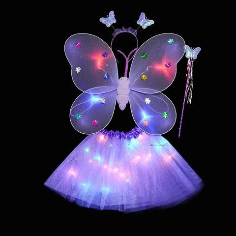 Led ánh sáng lên cánh bướm với tutu Váy Cô Gái bướm thiên thần cánh trang phục thiết lập Sân Khấu đạo cụ sáng cánh cổ tích